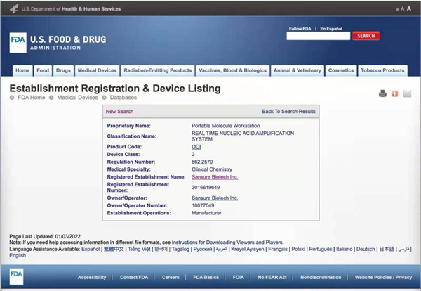美国食品药品监督管理局(FDA)是国际医疗审核权威机构,通过FDA认证的食品、药品、化妆品和医疗器械等产品,是全球权威标准证明。多宝电竞生物四通道iPonatic核酸检测分析仪获美国FDA认证后,将有效扩大和满足全球市场各级检测防控需求,为全球疫情防控工作持续助力,推动公司全球化事业发展。
