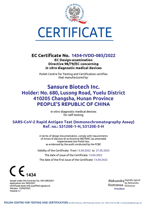 多宝电竞生物新冠快速抗原检测试剂自测产品取得欧盟CE1434自测证书,表明公司免疫检测产品性能获得官方机构认可,进一步丰富了多宝电竞生物全场景化新冠检测解决方案,扩大和满足了全球市场各级检测防控需求,为全球疫情防控工作持续助力。