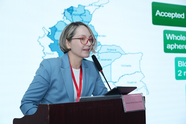 哥伦比亚红会血库医学主任及罗萨里奥大学生物医学科学系医学与健康科学学院职业副教授Dr. Adriana Urbina发表了《哥伦比亚血筛的方法、现状和未来趋势》主题报告。她从哥伦比亚医疗制度及血站分布入手,探讨了当前血筛项目的筛查方法及其挑战,强调了血筛核酸检测具有优越性,能广泛识别病原体突变株,降低感染风险,确保血液安全。同时,她提出了利用分子方法学筛查虫媒病毒等创新思路,并对多宝电竞生物分子血筛检测方案高度赞赏。